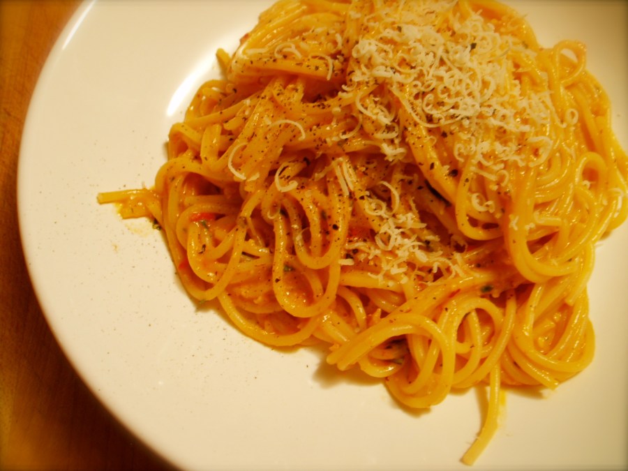 Spaghetti al Pesto Trapanese, or Pasta with Tomato Pesto