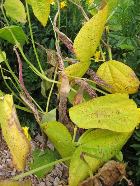 The cold is also affecting the other less tolerant plants like this second planting of Dragon Langerie beans, which are dying before the pods can mature.
