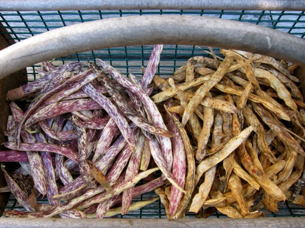 A harvest of both planting of beans, semi-mature and dried.