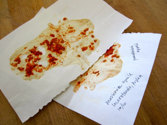 Across Puglia, in the pottery town of Grottaglia, Elizabetta Del Monoco introduced me to green tomatoes treated the same way — cut while still green on the branch and hung all winter. They don’t turn red, but instead go from tasting simply like green tomatoes to tasting of lemon and herbs and black pepper — more complex and interesting.